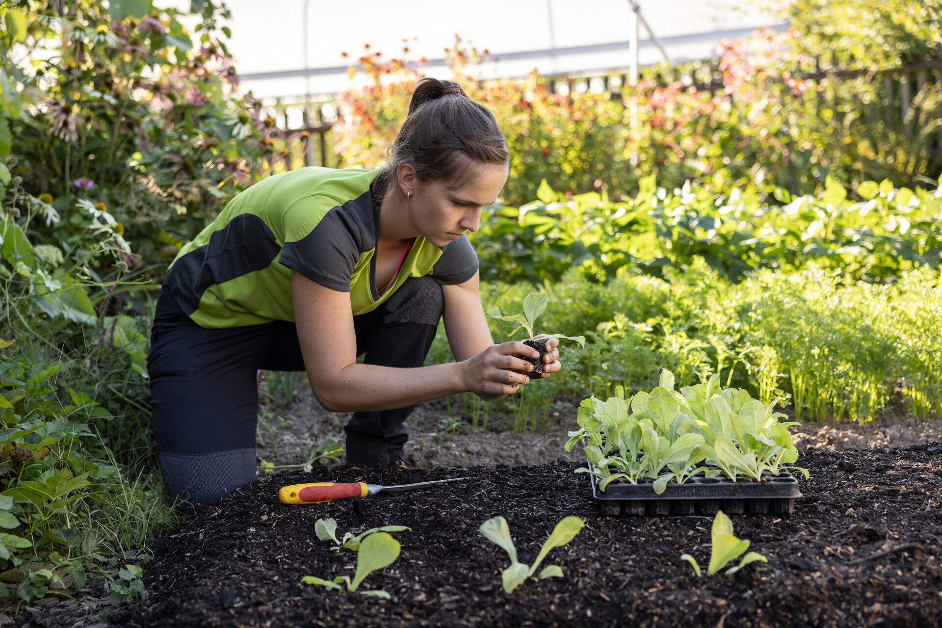 Sarah behandelt jede Pflanze mit der verdienten Sorgfalt, damit sie optimale Startbedingungen für ein gesundes Wachstum erhält.