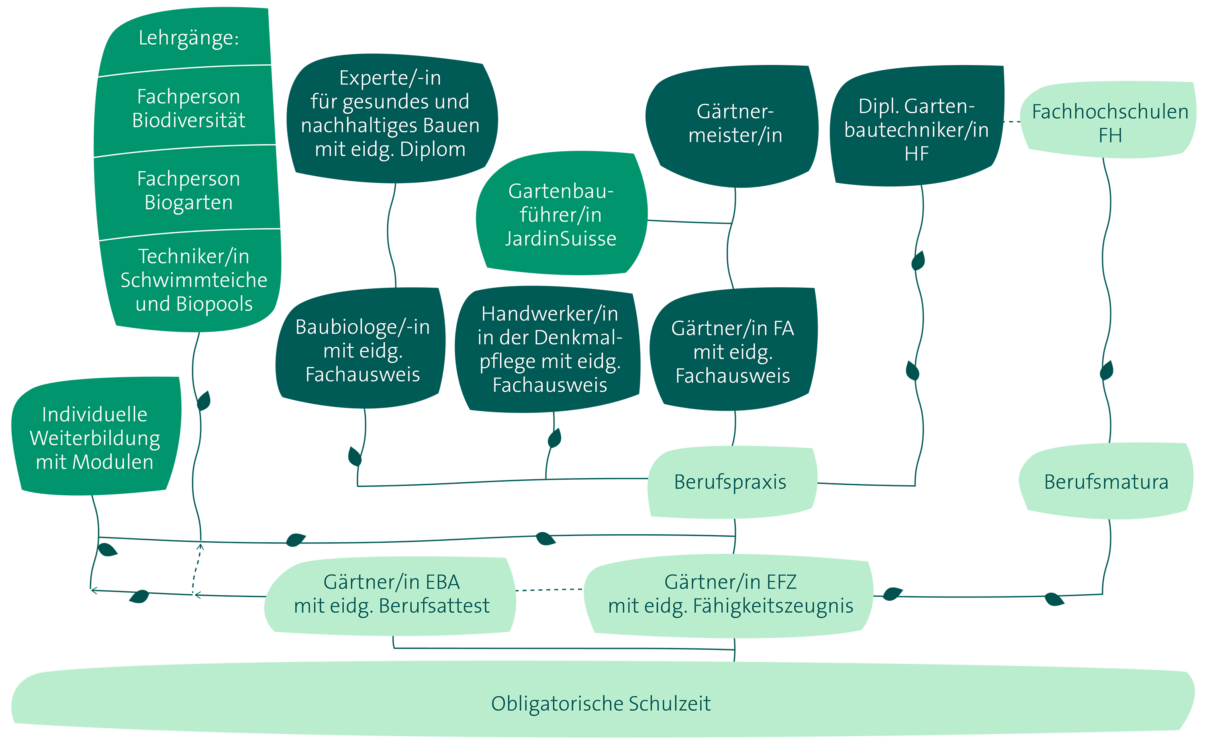 Möchtest du in der Grünen Branche weiterkommen? Uns von JardinSuisse freut das sehr! Und wir unterstützen dich gern dabei. Hier findest du als Gärtnerin oder Gärtner alle Möglichkeiten, die dir rund um die Weiterbildung offenstehen.